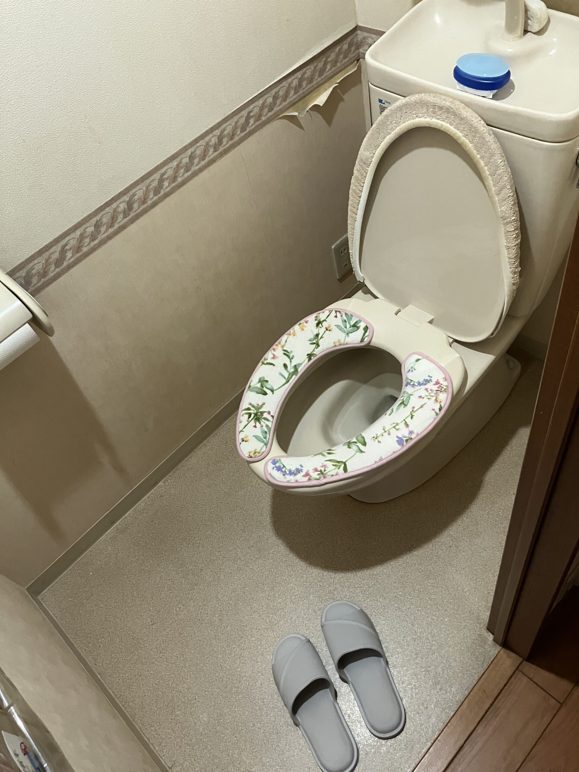 かわいらしいデザインの壁紙へチェンジ!トイレが明るい空間に。