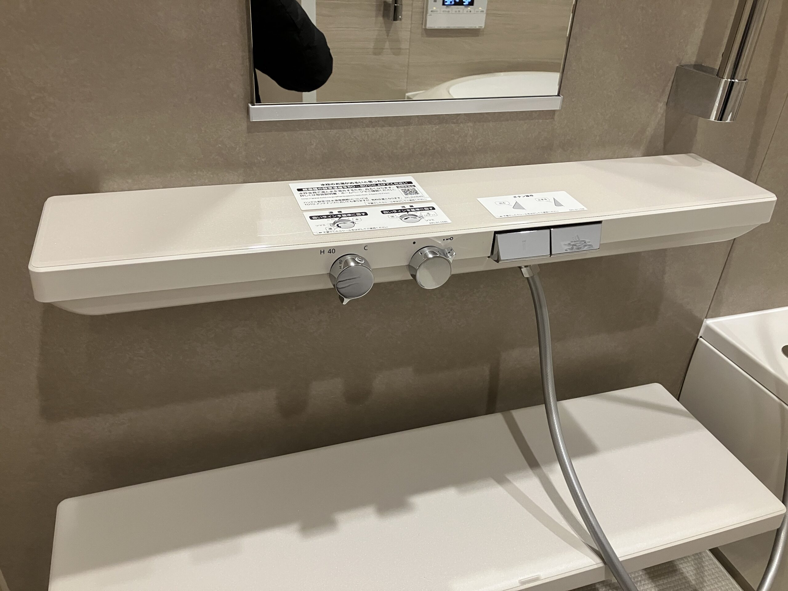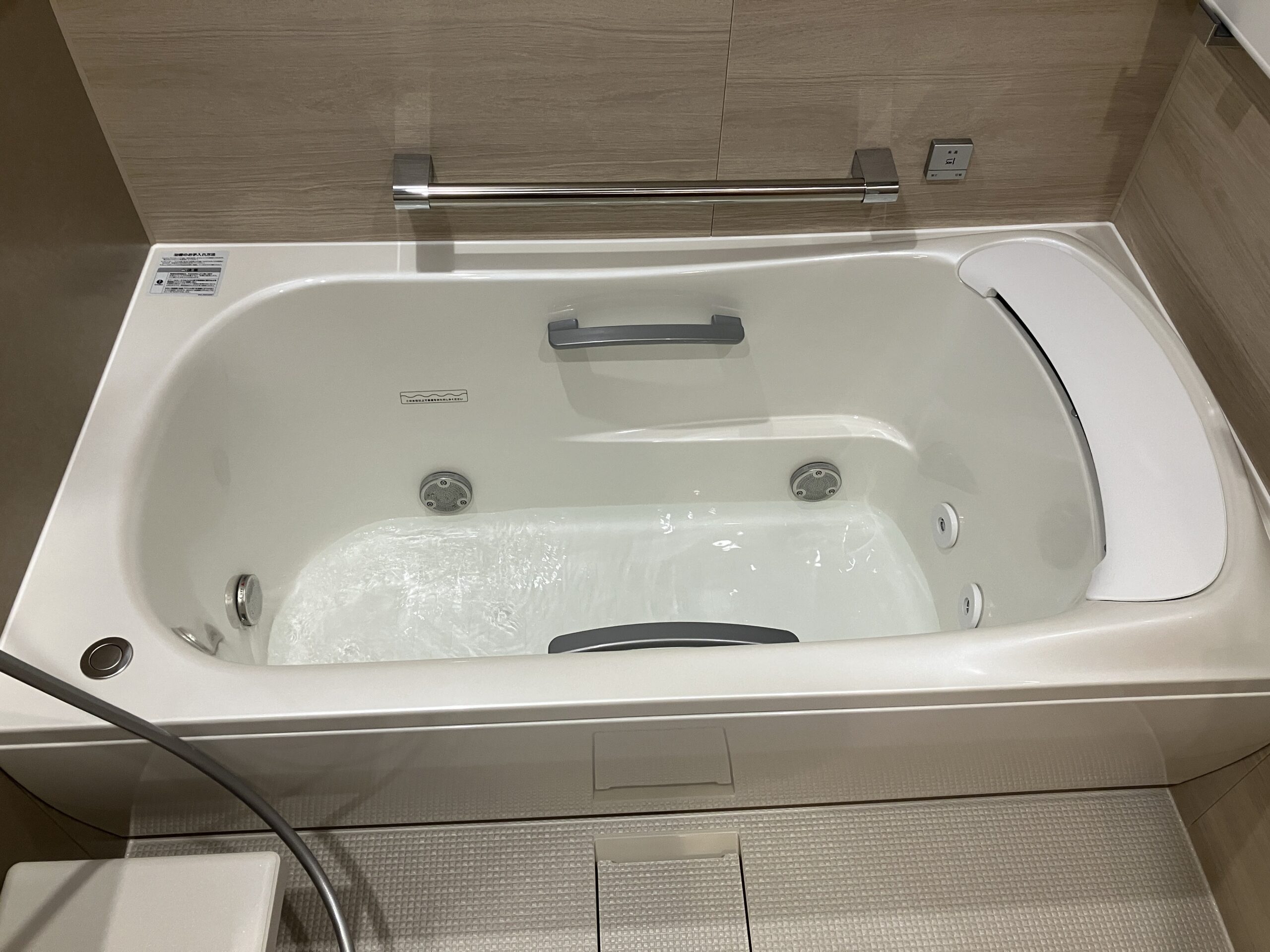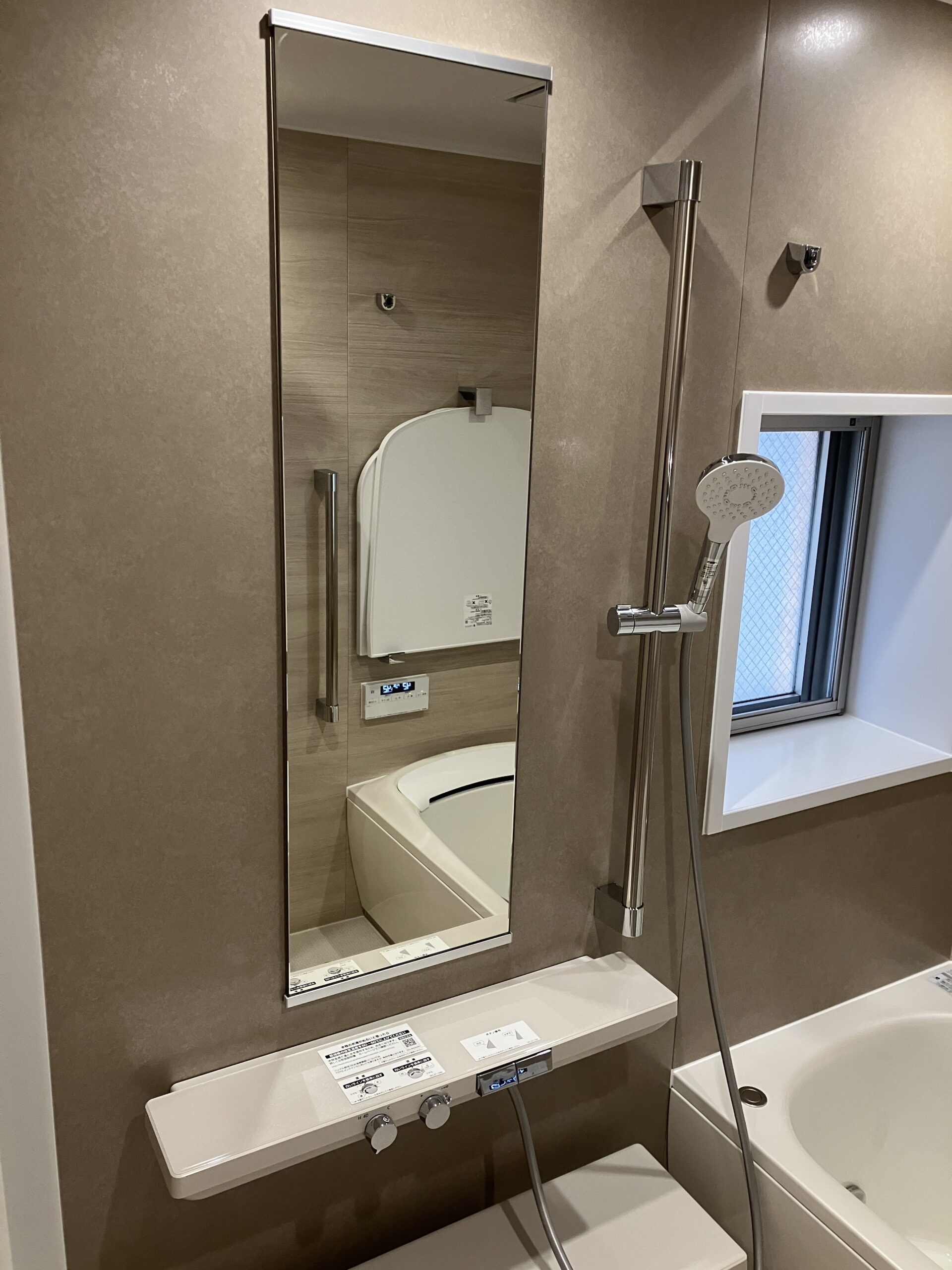 また、打ち合わせ前にお客さまご自身でユニットバスの実機をご覧になり、TOTO製ユニットバスに搭載されている『楽湯』機能に強い関心をお持ちでした。そのため、TOTO製シンラをご採用いただき、『楽湯』と『床ワイパー洗浄』の機能を追加。リラックスしたバスタイムをお過ごしいただける空間となりました。