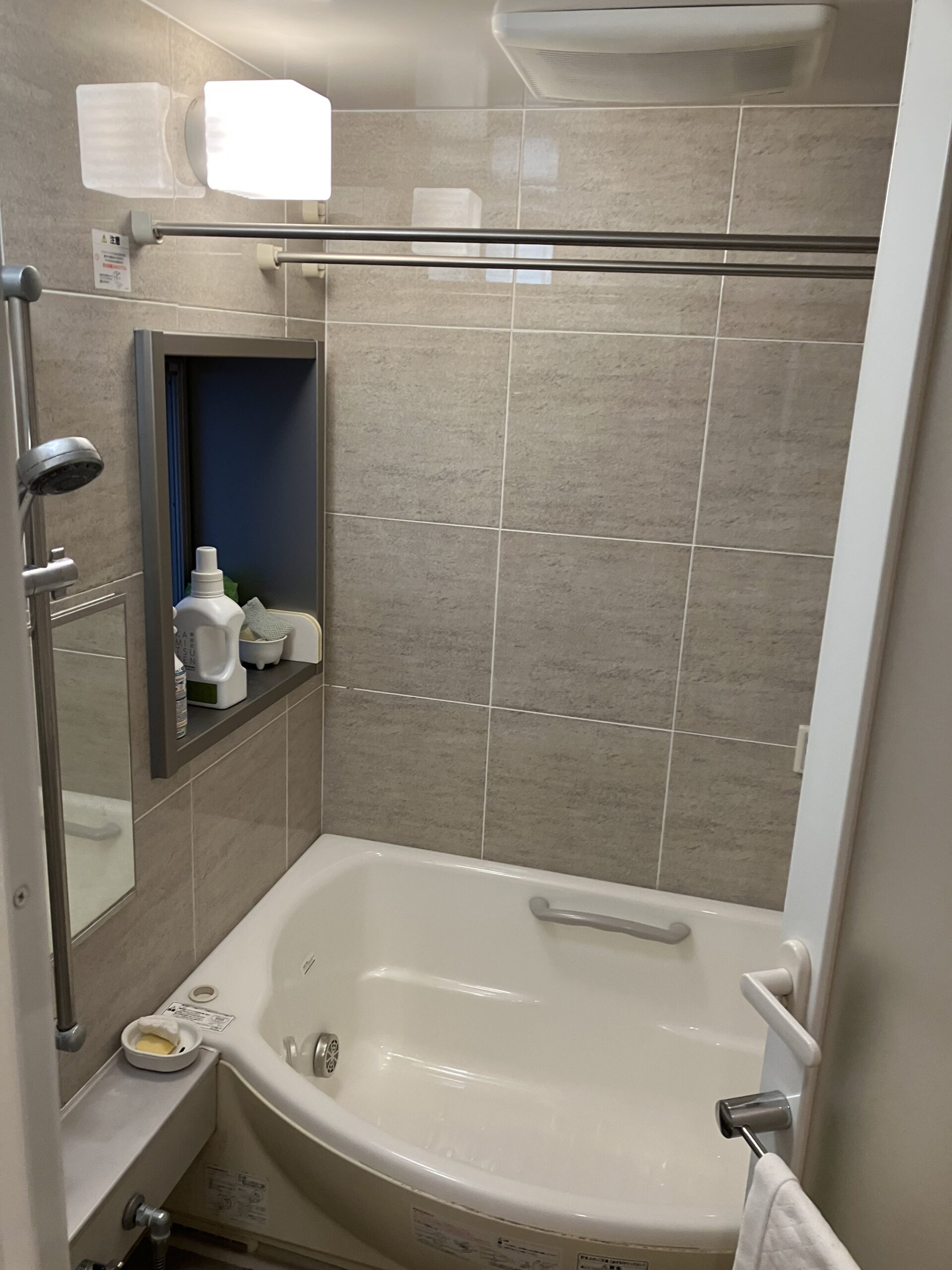 既存のタイル調ユニットバスは、目地の汚れが気になる点や、冬場の冷たさがお客さまのお困りごとでした。