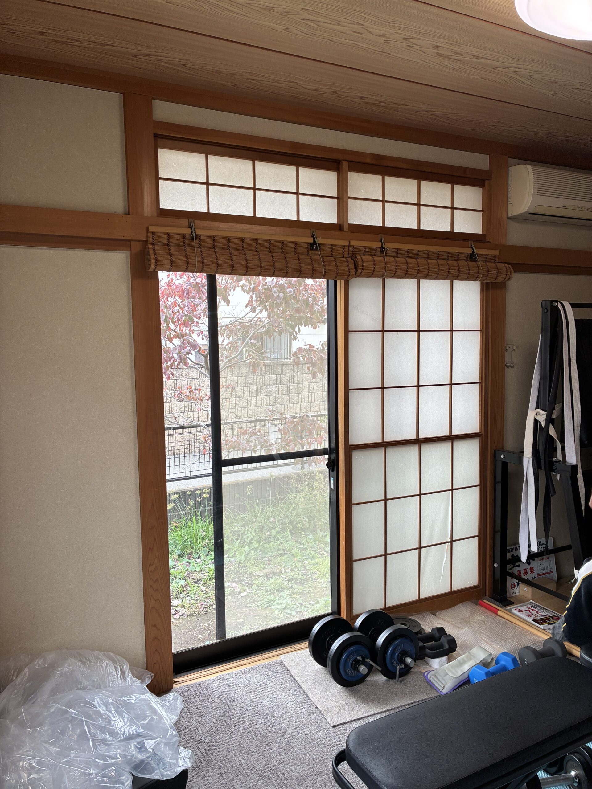 障子は貼り替えるのが面倒であること、敷居滑りが劣化して破損してきていること、
