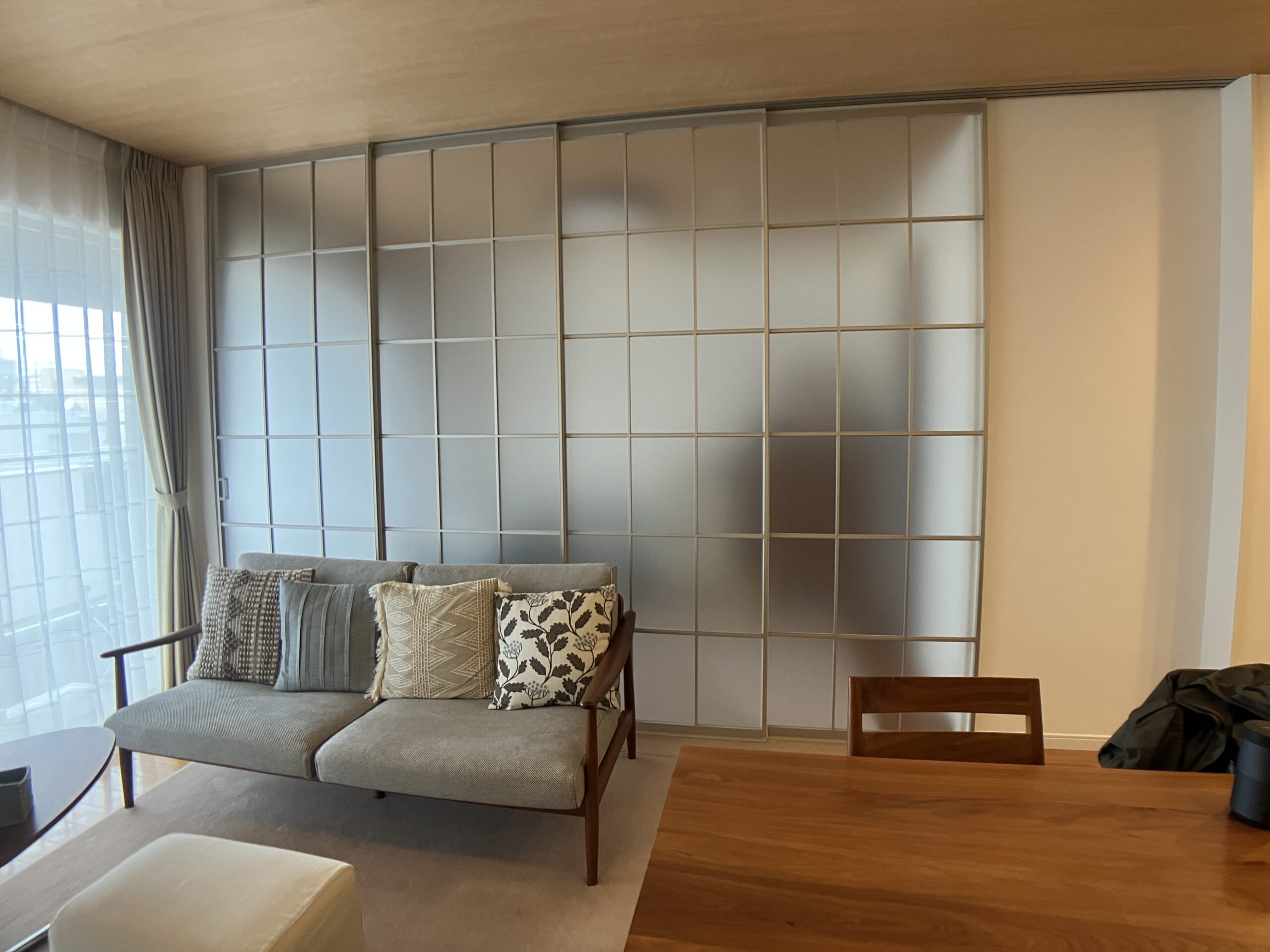 部屋を仕切る間仕切り建具に圧迫感を感じている。半透明の光が入るドアにして部屋全体に光を取り込みたいというご要望をいただきました。